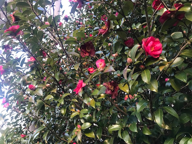 しかし今日、上の方の家のサザンカがきれいに咲いているので驚いた。今年は暖かく、今日などは風が生暖かく、気持ち悪いほどだった。とはいっても、この冬すでに-6度ぐらいまで冷え込んだ日も何度もあった。寒冷地向けの品種なのかもしれない。