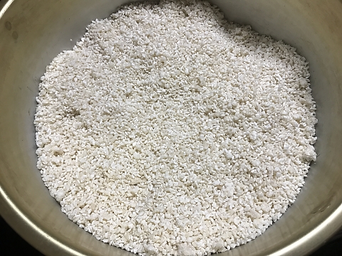私は地域のやり方にもとづき、寒につけようと思っていたのだが、注文した糀が来るのが2月末になってしまったため、仕込んだのは2月末日だった。